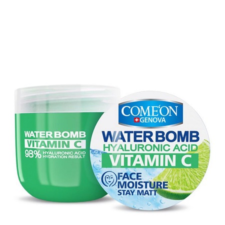 کرم کاسه ای واتر بمب آبرسان کامان حاوی ویتامین C,یک بمب آبرسان سرشار از هیالورونیک اسید است که سبب نرمی و لطافت پوست میشود .علاوه بر آن وجود ویتامین سی در آبرسان کامان باعث روشنی و شفافیت پوست میگردد.