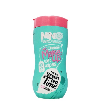 دستمال مرطوب نینو مدل green tea حاوی عصاره چای سبز,آلوئه ورا ,بابونه و گل همیشه بهار است ,که مناسب انواع پوست است و در پاک کردن مواد آرایشی ضد آب و آلودگی ها از روی پوست کاربرد دارد.
