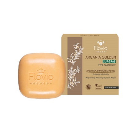 صابون آرگان طلایی فلوویو یک صابون مرطوب کننده قوی حاوی روغن آرگان ، عسل طبیعی، ویتامین E و دیگر ترکیبات مفید برای پوست است. این صابون علاوه بر رطوبت رسانی عمیق به پوست شما از خواص ضد قارچی برخورداربوده و مشکلات پوستی شما را درمان می کند.