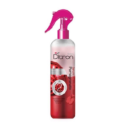 اسپری دو فاز انار دیترون برای موهای خیلی خشک و آسیب دیده و رنگ شده مناسب است. اسپری دو فاز انار دیترون حاوی عصاره انار است که باعث نرم شدن موها می شود و از ریزش مو و بروز شوره سر جلوگیری می کند. اسپری دو فاز انار دیترون تغذیه کننده مو و آبرسان است. اسپری دو فاز انار دیترون تثبیت کننده رنگ مو است و به درخشاندگی موها کمک می کند. اسپری دو فاز انار دیترون ازایجاد گره موها جلوگیری می کند و شانه شدن موها را آسان تر می سازد. اسپری دو فاز انار دیترون حاوی کراتین است، عصاره انار موجود در اسپری دو فاز دیترون از ریزش موها جلوگیری کرده و به رفع خارش موها کمک کننده است.