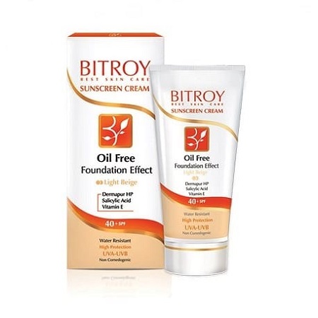 کرم ضدآفتاب فاقد چربی بژ روشن SPF40 بیتروی که محافظت بالا از پوست در برابر اشعههای مضر خورشید مانند اشعههای UVB و UVA است. مقدار SPF بالا برای پوستهای بسیار حساس و آسیبپذیر مناسب است و اگر پوستی معمولی دارید بهتر است از SPFهای پایینتر استفاده کنید.کرم ضدآفتاب فاقد چربی بژ روشن SPF40 بیتروی ۵۰ حجم دارد که تامدتی نهچندان کوتاه میتوان آن را مورداستفاده قرار داد. این کرم ضد آفتاب دارای رنگ بژ روشن است است. بیتروی برای افراد با پوست چرب و حساس قابل استفاده است. کرم ضدآفتاب بیتروی خاصیت ضدمیکروبی دارد که از ایجاد آکنه و جوشهای میکروبی بر روی پوست جلوگیری کرده و چربی پوست را در حالتی متعادل قرار میدهد. همچنین از ایجاد و تشدید آکنه و جوشهای موجود بر روی پوستهای چرب جلوگیری میکند.