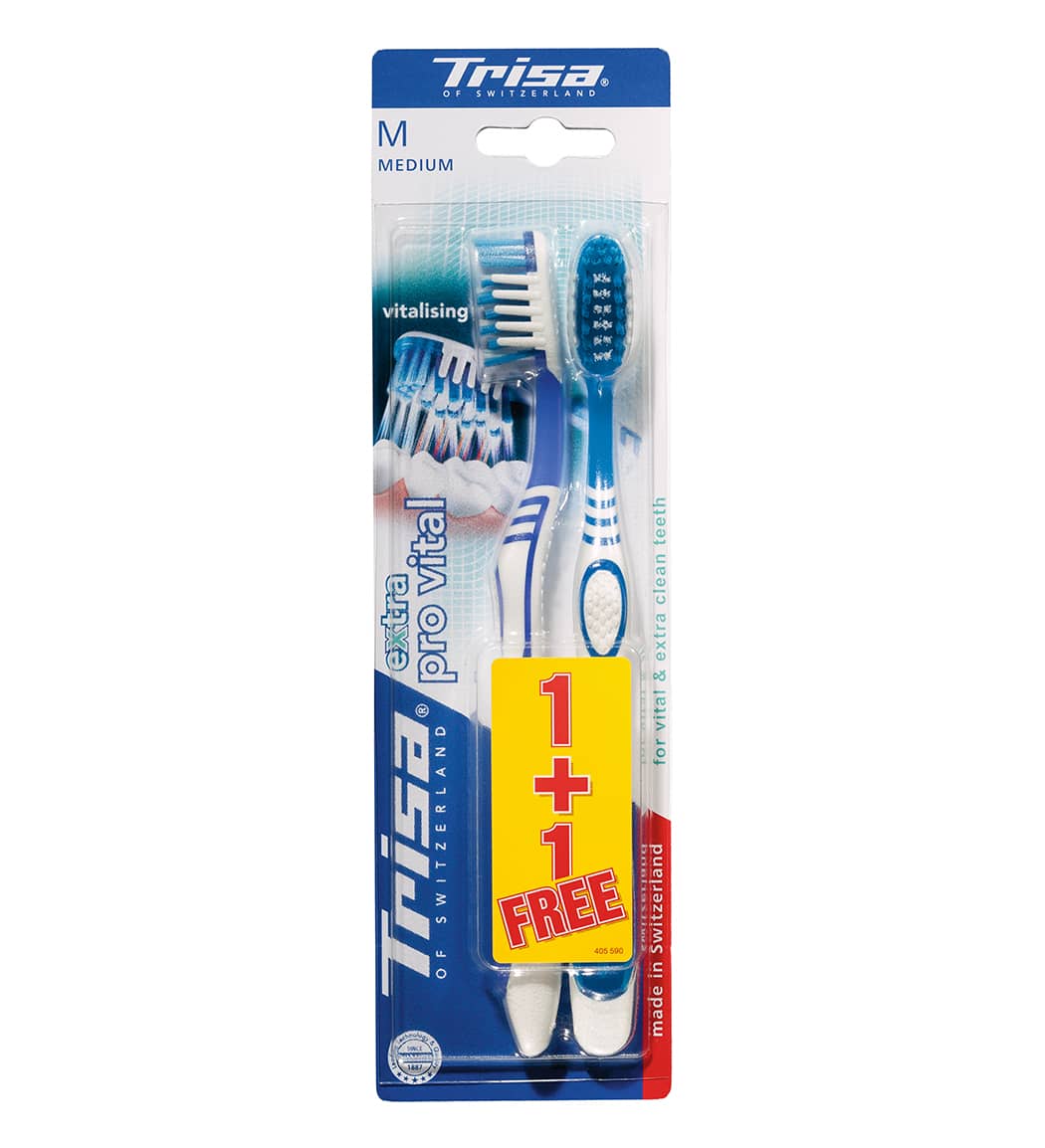 مسواک اکسترا پرو ویتال تریزا برس متوسط 2 عددی، دارای برسی با الیاف متوسط است که دندان ها و لثه را از هرگونه جرم و پلاک پاک کرده، بوی بد دهان را از بین می برد و باعث می شود دهان و دندان هایی سالم و زیبا داشته باشید. مسواک تریزا اکسترا پرو ویتال تریزا برس متوسط 2 عددی از دندان ها در برابر پوسیدگی محافظت کرده و دارای پاک کننده زبان است که جرم های زبان را نیز پاک می کند.